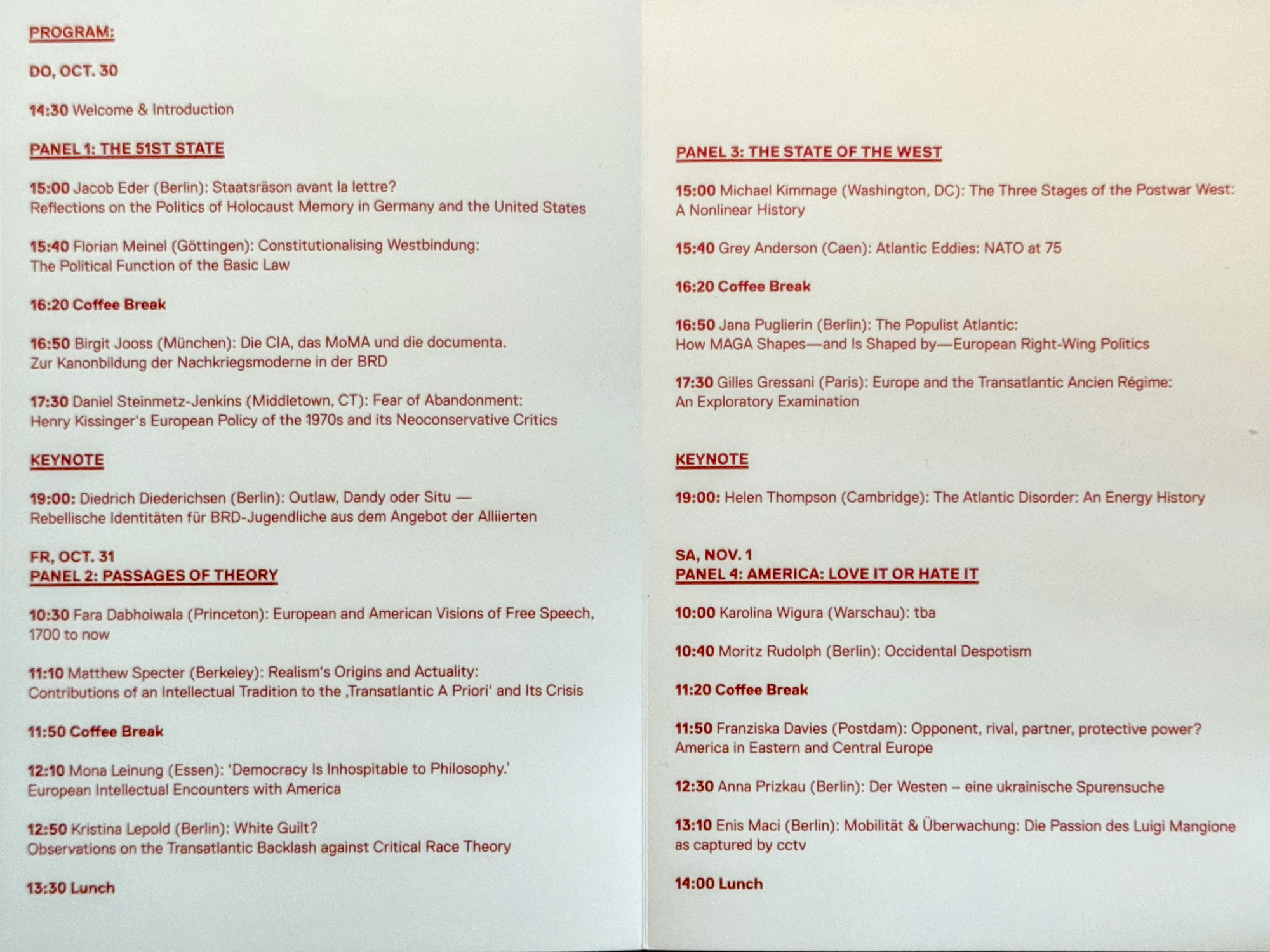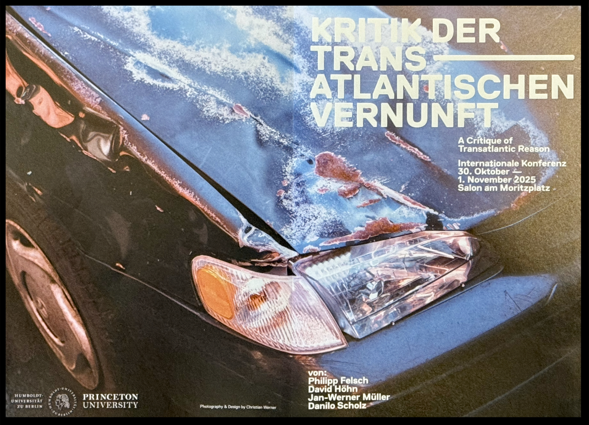 Eine „Kritik der transatlantischen Vernunft“ – das ist einigermassen raumgreifend, was mag man sich darunter vorstellen? Jedenfalls ist eine transatlantische eine Konferenz mit Teilnehmern von beiden Seiten des Atlantics – Berkeley, Princeton, Washington / Warschau, Berlin, Paris, Caen, München …: auch die Themen der Referenten spannen ein breites Panorama: Holocaust-Politics, Verankerung der Westbindung in der Verfassung, Nachkriegskunst unter dem Kuratel der CIA, eine Spätkritik der NeoCons, eine Revue rebellischer Identitäten, ein Exkurs zur Redefreiheit, Realism, die Philosophie-Feindlichkeit der Demokratie, White Guilt, Nato at 75 … es ist nicht leicht einen gemeinsamen Nenner zu finden.